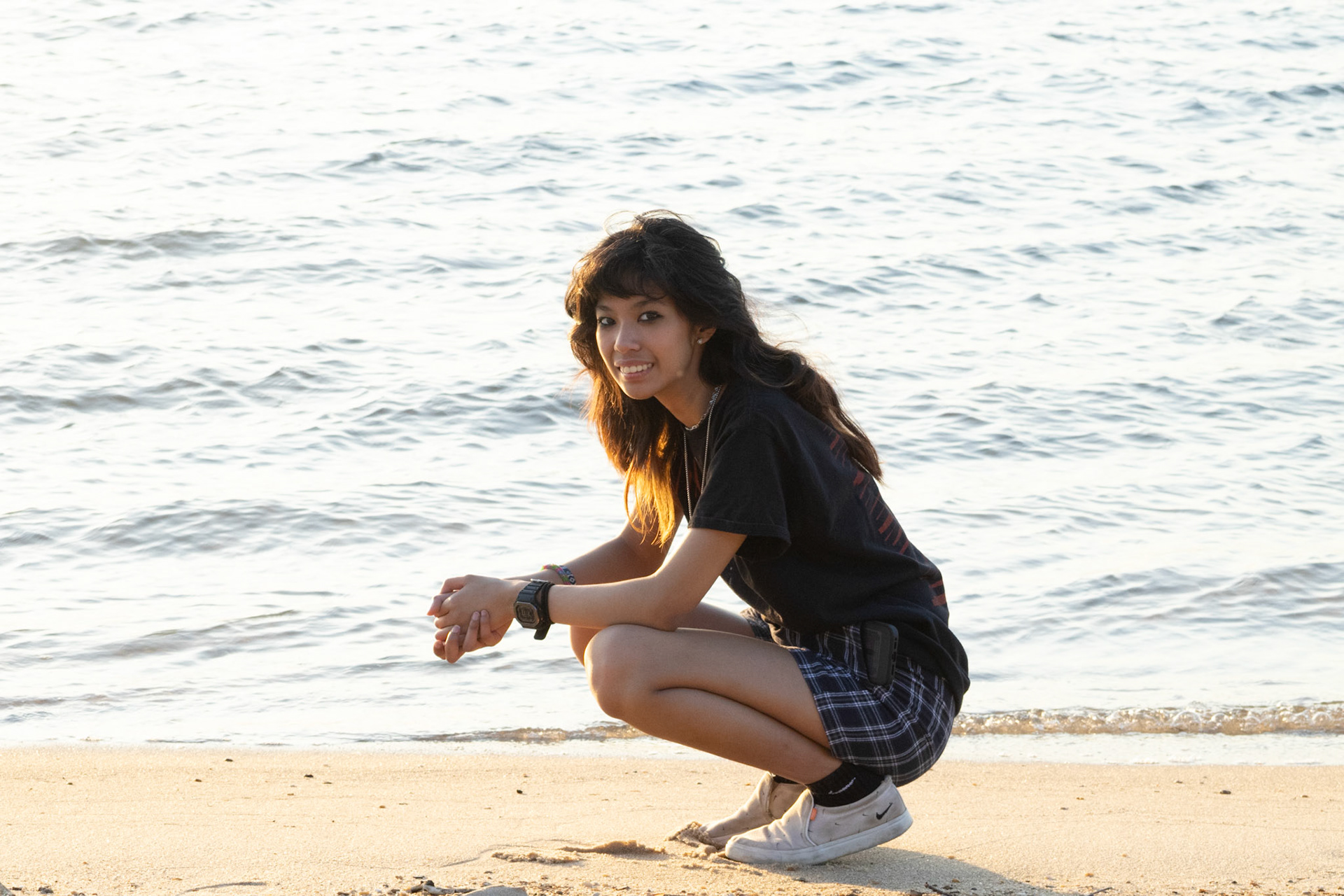 While I was doing my self-portrait, my partner assisted me. There are a lot of beach and green tones while taking landscape photos here.