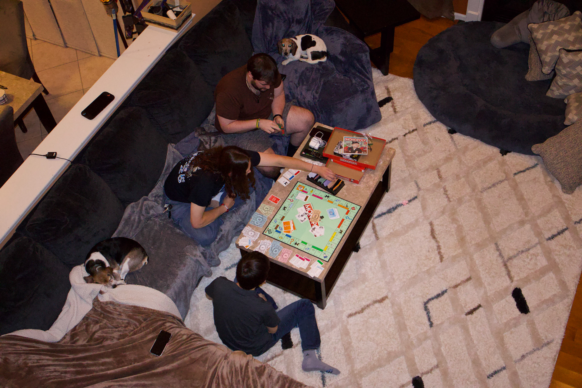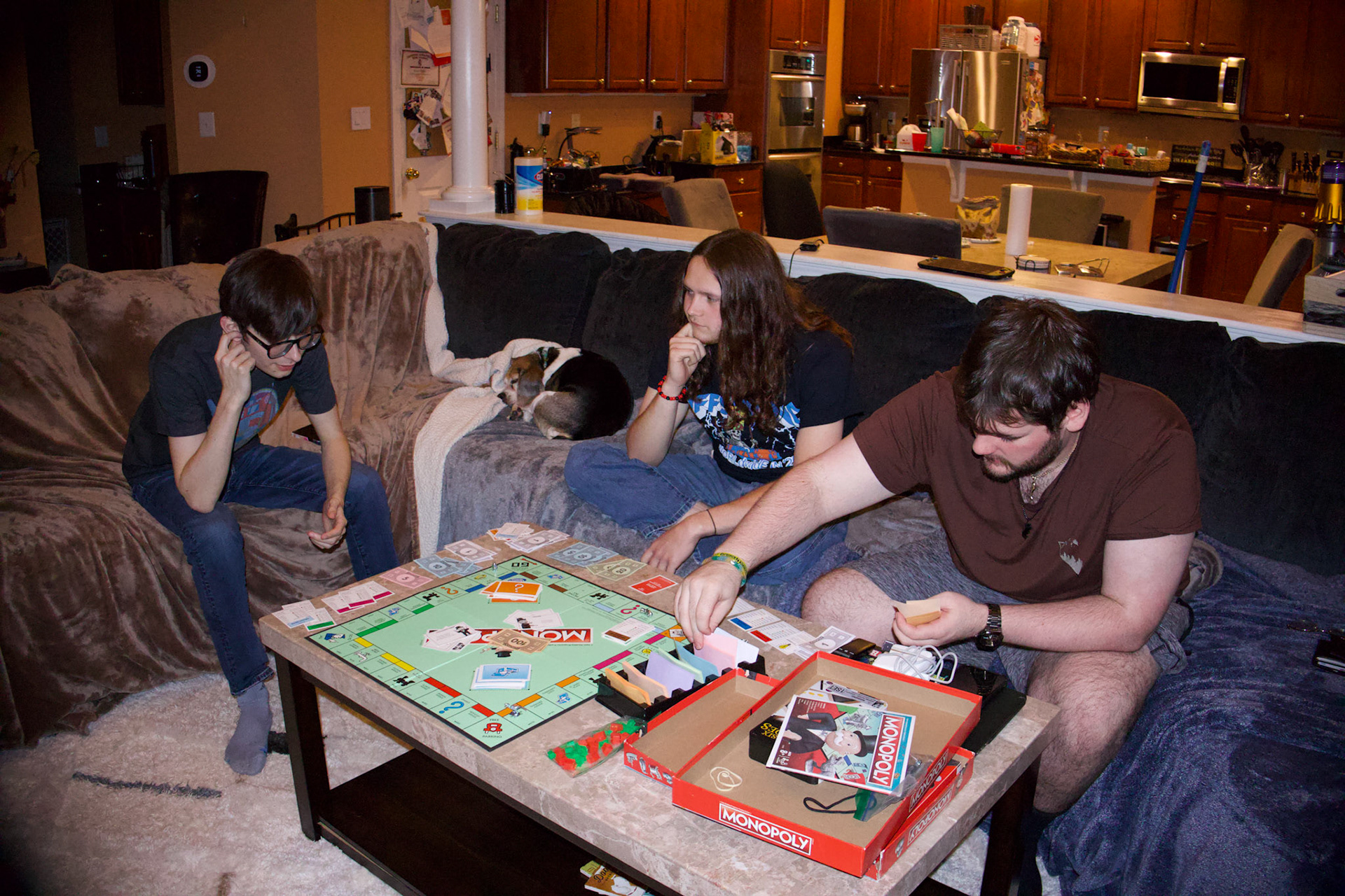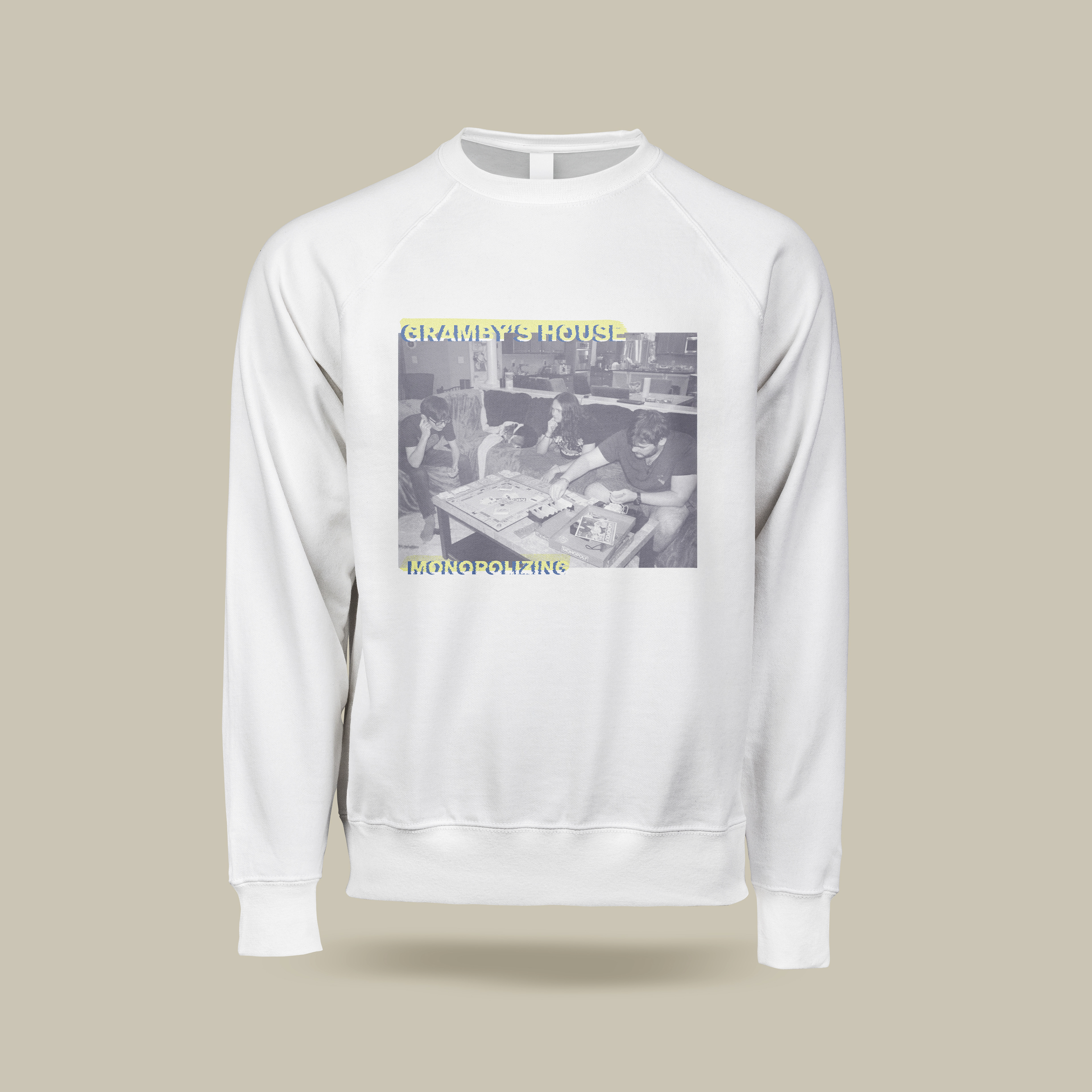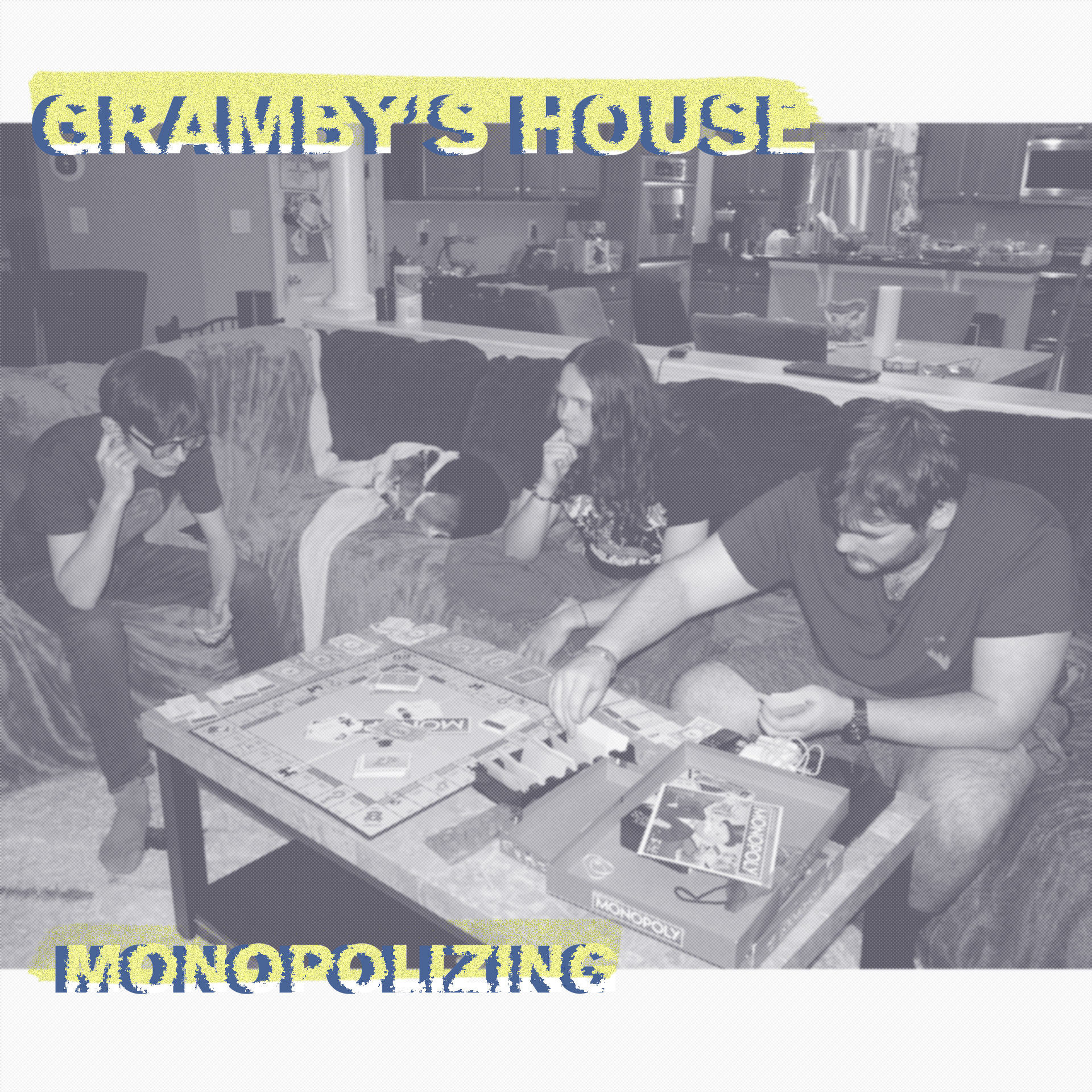 When creating the CD Cover, I photographed my close friends behind the scenes to make the images look natural and unposed. The front cover shows them playing Monopoly with a halftone filter added for a textured, retro effect. The back cover keeps the same relaxed mood with the song names listed. I experimented with several sans serif typefaces to find one that matched the casual and simple style of the design.