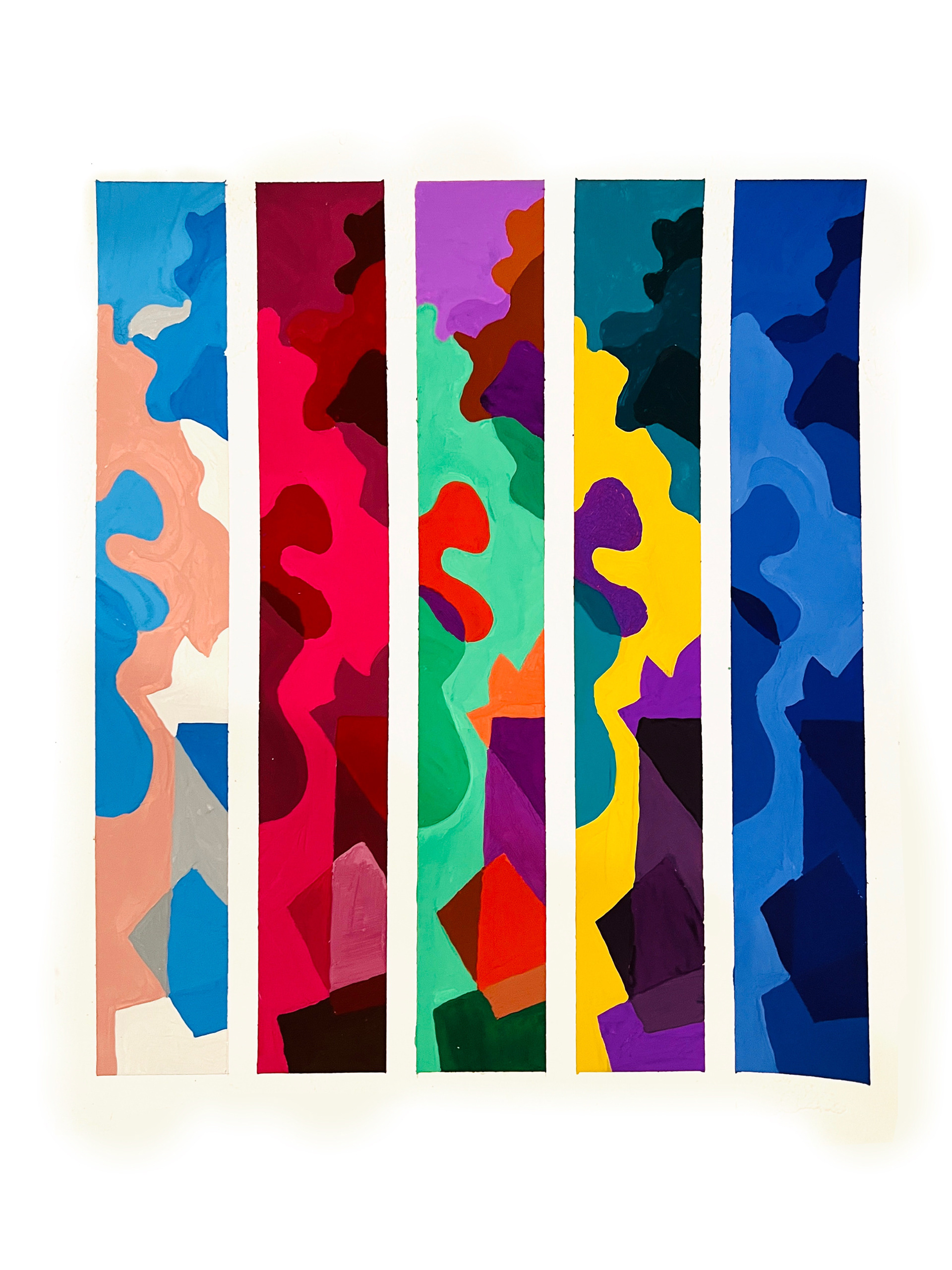 This color study project required me to paint a series of repeated compositions so I can be able to understand the impact of color. I emphasized on craft a lot when working on this piece which kept me in total control of my own media and be as clean and professional as possible. I used gouache; bright vibrant colors to keep in tact.
