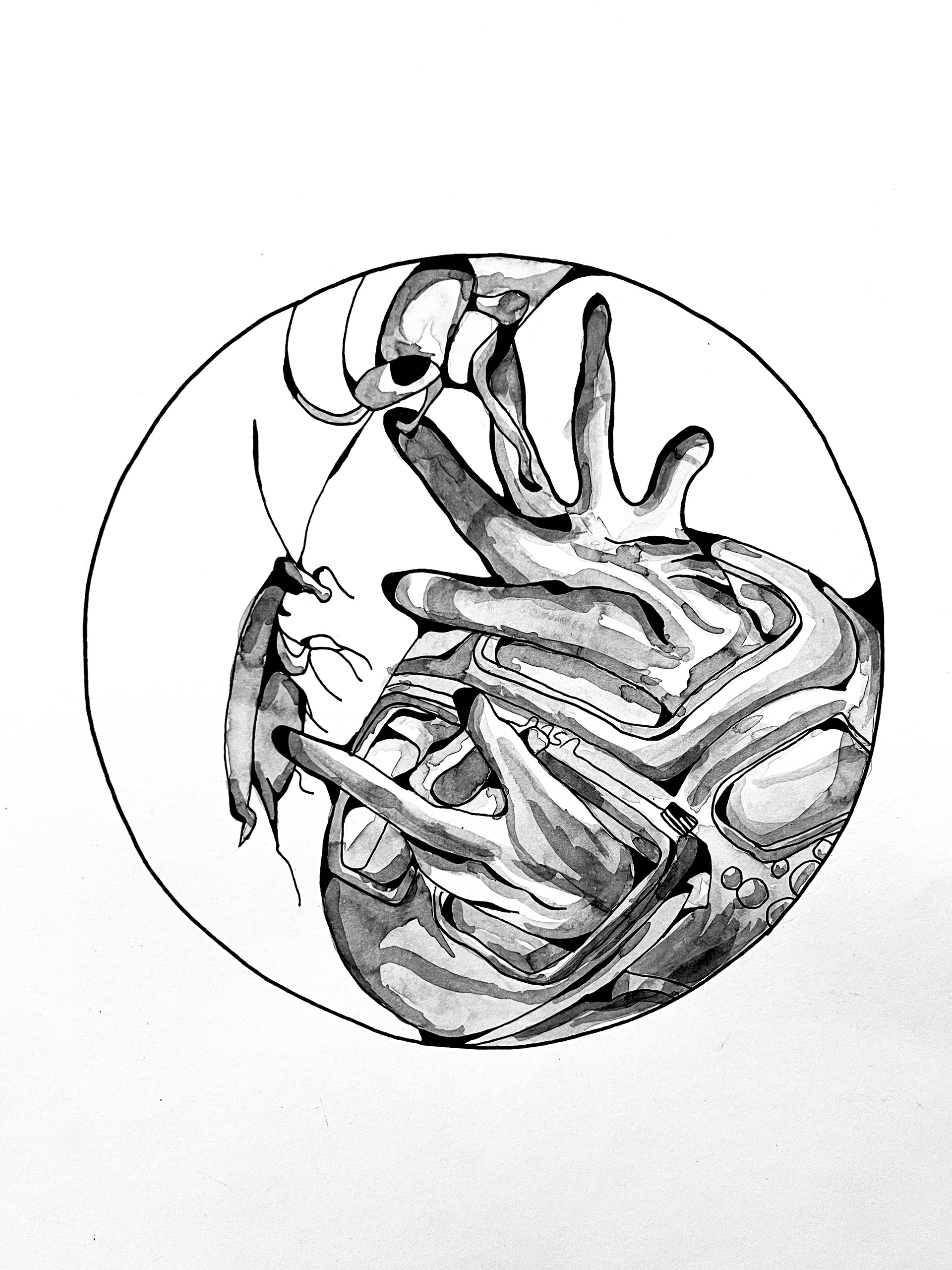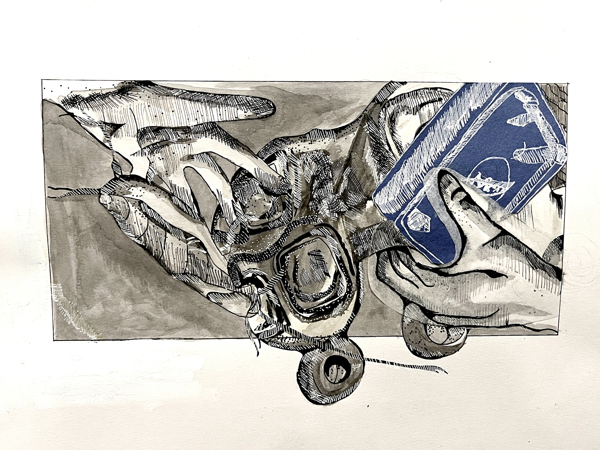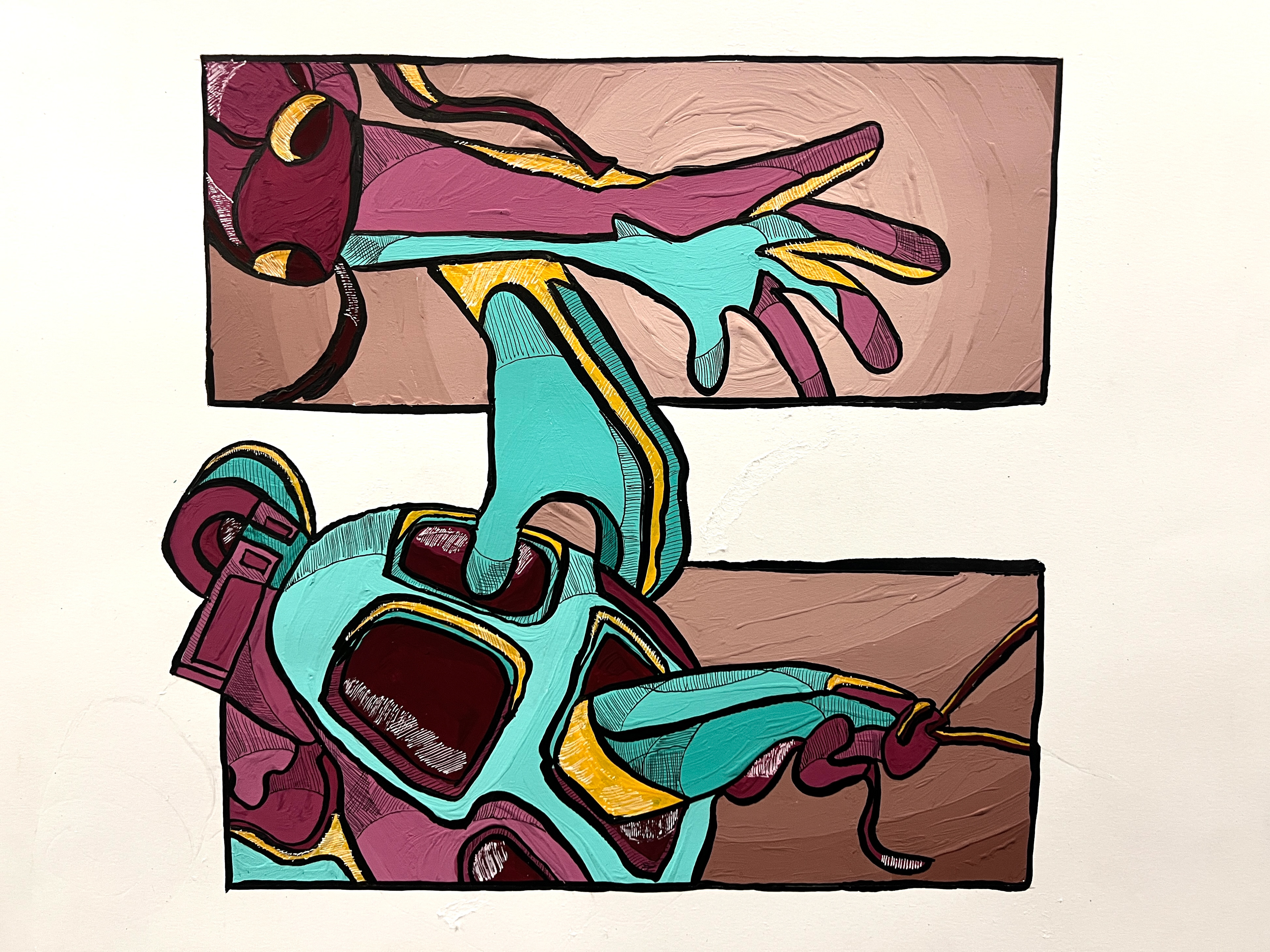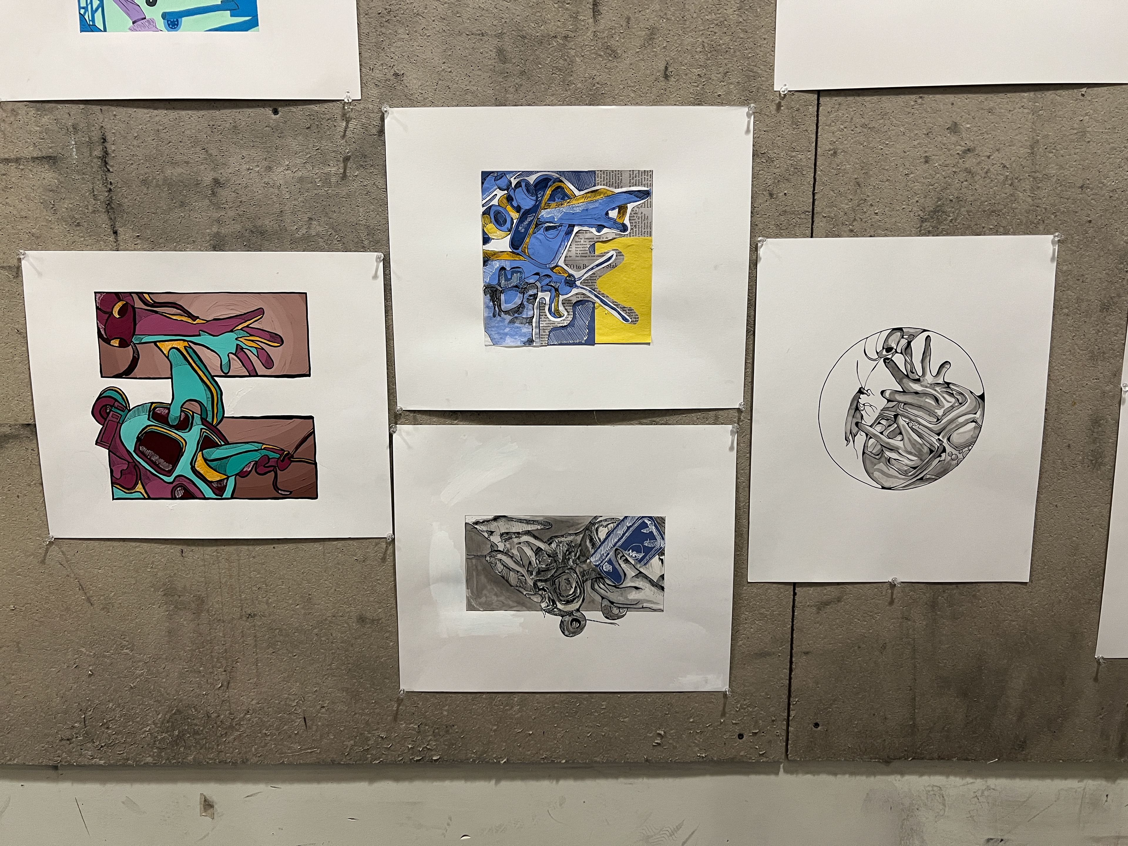 No words, no explanations, a cluster of vehicles, humanism and bugs flying out of nowhere to make a grand "finale". The Grand Cluster is composed to display my work within finesse, craft and experience, all within a single semester. This includes a picture plane, the materials used, the art style, what kind of visual path, and finally the color choices.