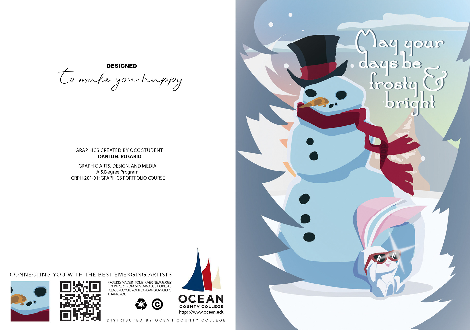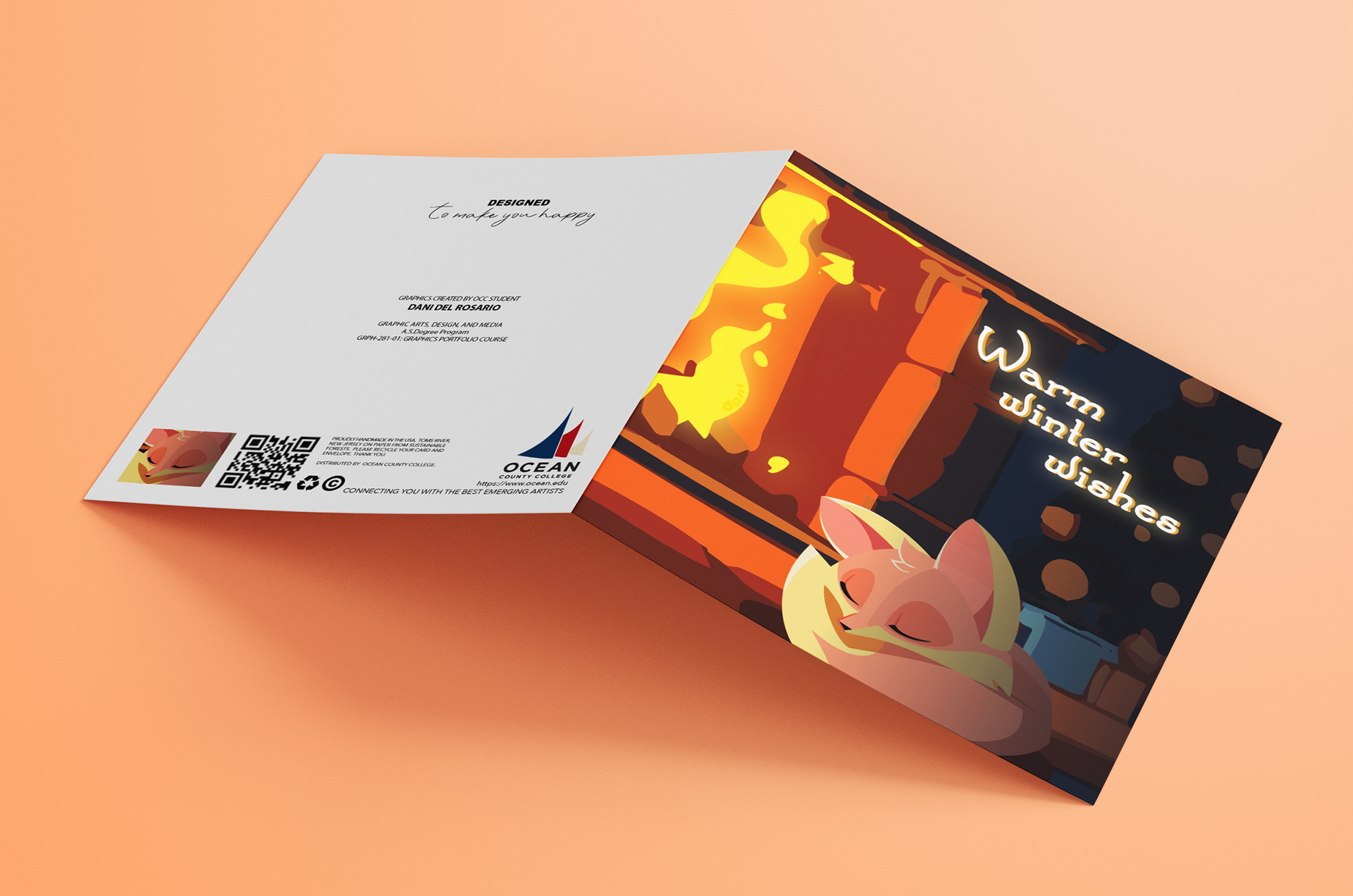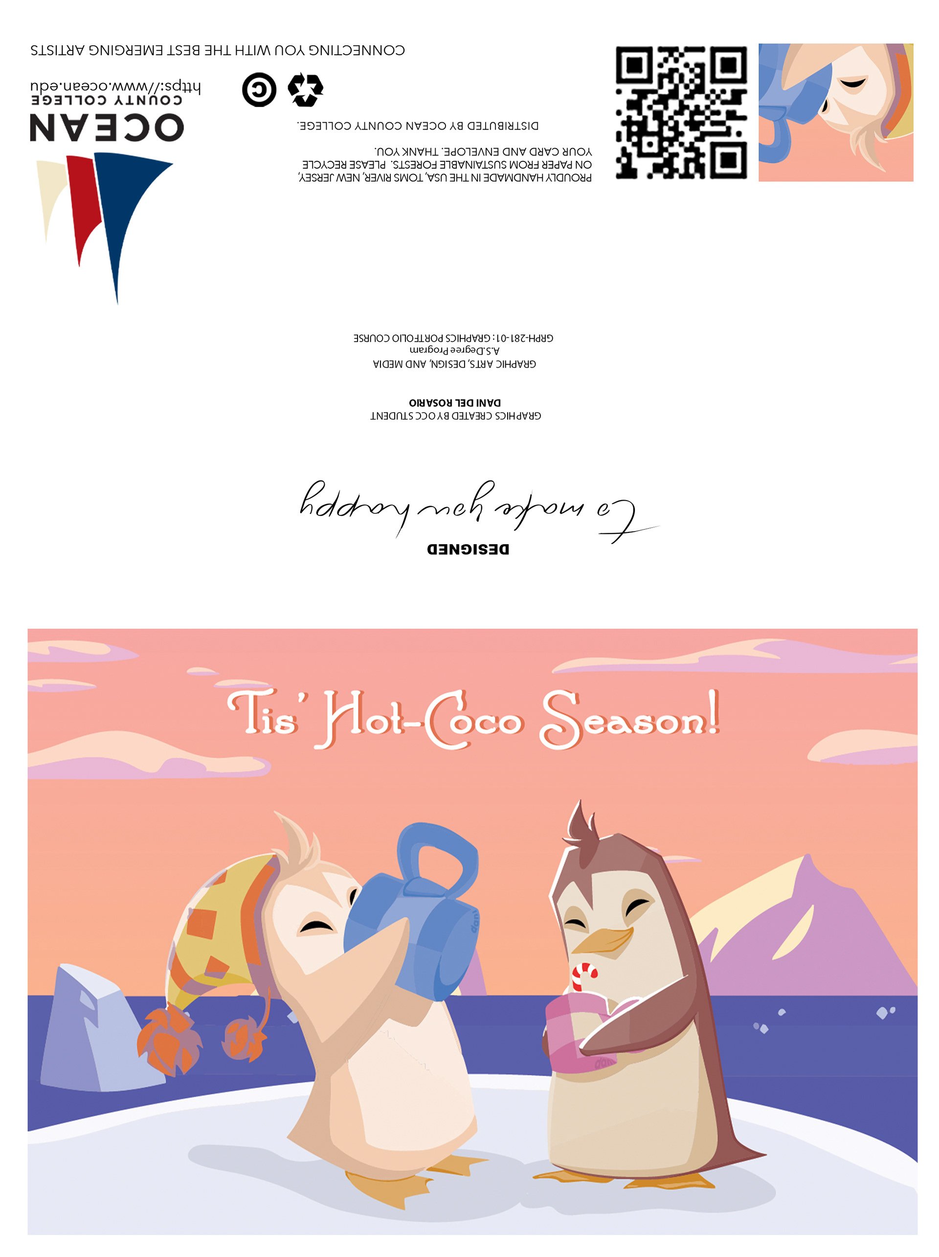 I was inspired by the game Animal Jam and wanted to capture a warm, playful, nostalgic feeling through vector art. I experimented with a more childlike art style that feels inviting and cozy, reflecting the cheerful spirit of the holidays. The use of both warm and cool tones helped balance the winter aesthetic with the comfort of festivity, creating a friendly and joyful set of cards.