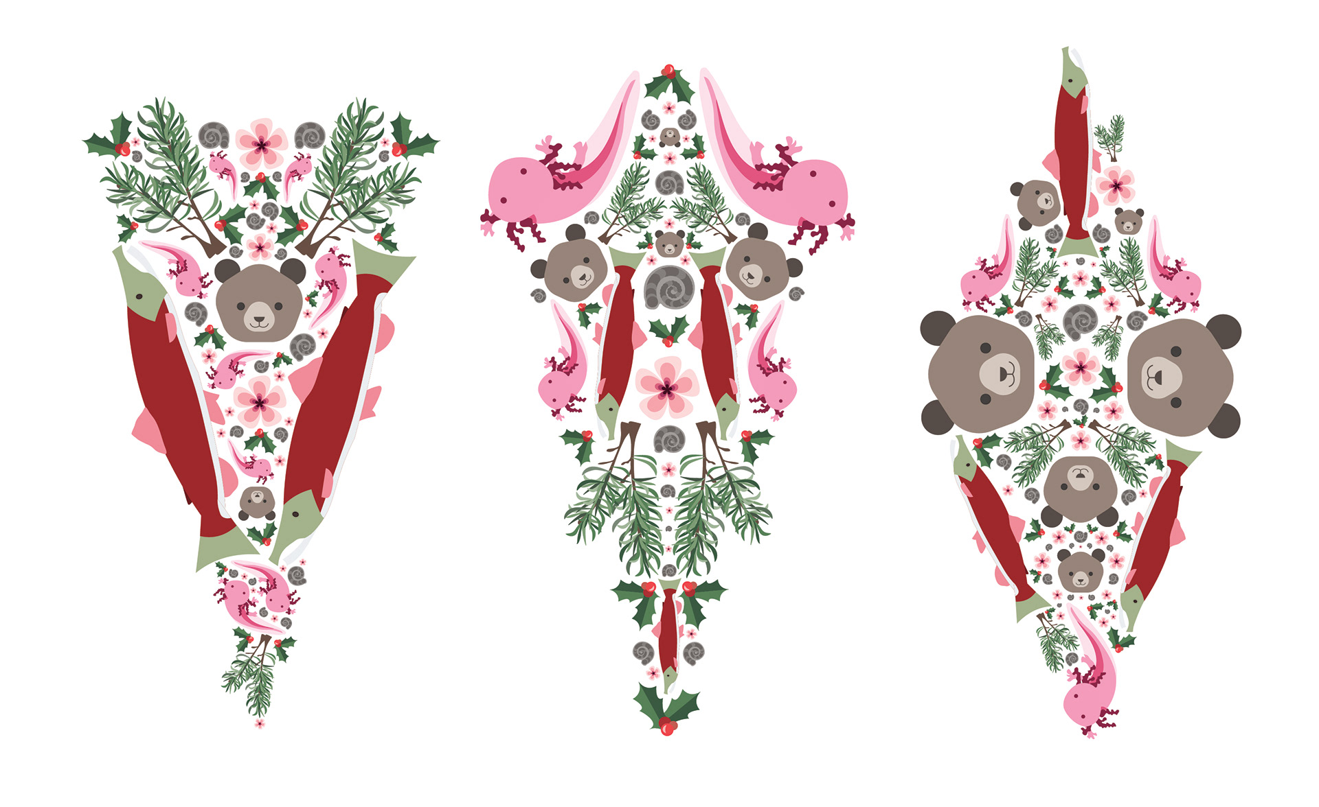 To fit those seven designs into the triangular outline, I had to arrange them up. In the end, I had to do a little math and rotate each triangle and create a circular view, which is what I have three finalized mandala designs.